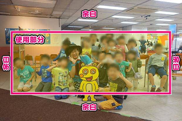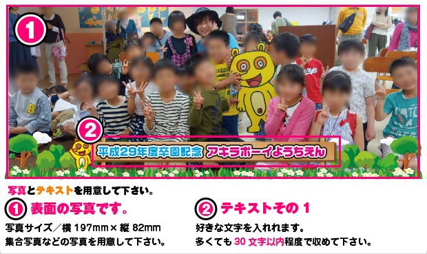 写真は横長になるので、横長のもの(横長に並んでいる写真など)をご用意下さい。